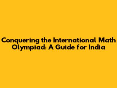 Conquering The International Math Olympiad: A Guide For India