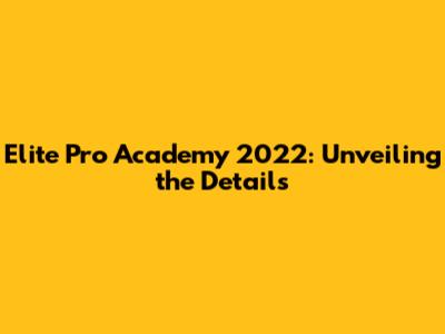 Elite Pro Academy 2022: What You Need To Know