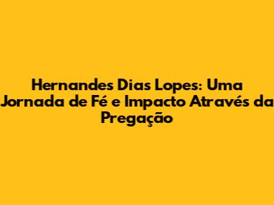 Convidamos você a explorar as pregações, livros e demais recursos de Hernandes Dias Lopes. Deixe que suas palavras inspirem você a buscar um relacionamento mais profundo com Deus e a viver uma vida que honre o nome de Cristo. Que a mensagem de esperança e transformação de Hernandes continue a tocar o seu coração e a transformar sua vida! Que você possa encontrar nas suas pregações a direção, o encorajamento e a força que você precisa para enfrentar os desafios da vida e para crescer em sua fé. Que as palavras de Hernandes Dias Lopes inspirem você a viver uma vida de acordo com os princípios bíblicos, buscando sempre a vontade de Deus em sua vida. A pregação de Hernandes é, acima de tudo, um convite à fé, à esperança e ao amor.
