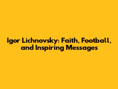 Igor Lichnovsky: Faith, Football, And Inspiring Messages