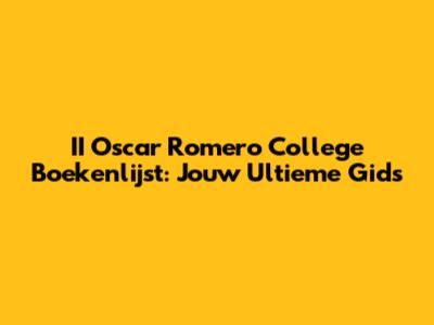 II Oscar Romero College Boekenlijst: Jouw Gids
