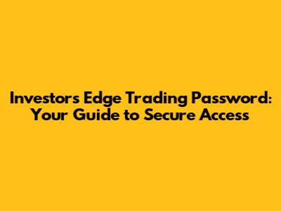Investors Edge Trading Password: Your Guide To Secure Access