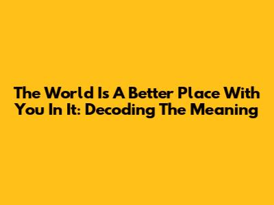 Hey guys, ever heard the phrase "The world is a better place with you in it"? It's a super common sentiment, right? But what does it really mean when someone says that to you? It’s more than just a nice little platitude; it’s a profound acknowledgement of your impact and value. Let's dive deep into what this beautiful statement signifies, why it’s so important to hear, and how you can spread that positive energy further. It’s about recognizing that your presence, your unique qualities, and your actions contribute something special to the tapestry of life around you. Think about it – every single person has a ripple effect, and this phrase is a way of highlighting the positive ripples you create. It's not about being famous or achieving grand, world-altering feats (though that's awesome too!). It’s about the everyday kindnesses, the unique perspective you bring, the way you make others feel, and the simple fact that your existence enriches the lives of those around you. It’s a powerful reminder that you matter, that your light shines, and that the world genuinely benefits from your being here. So, next time you hear it, or even better, next time you feel like saying it, remember the depth of meaning it carries. It’s a celebration of individuality and the collective good that comes from each of us being our authentic selves and sharing our gifts with the world.