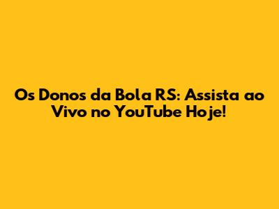 Os Donos Da Bola RS: Assista Ao Vivo No YouTube Hoje!