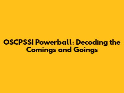 OSCPSSI Powerball: Decoding The Comings And Goings