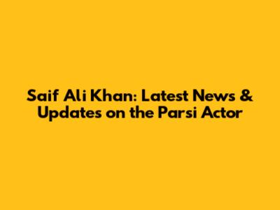 Saif Ali Khan: Latest News & Updates On The Parsi Actor