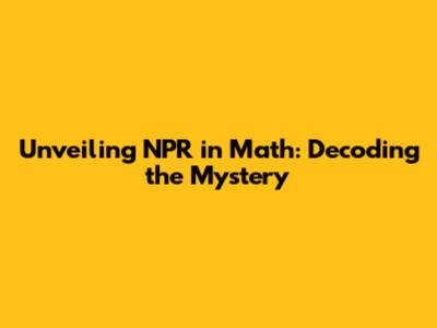 Unveiling NPR In Math: Decoding The Mystery