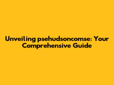 Unveiling Psehudsoncomse: Your Comprehensive Guide