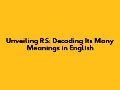 Unveiling 'RS': Decoding Its Many Meanings In English