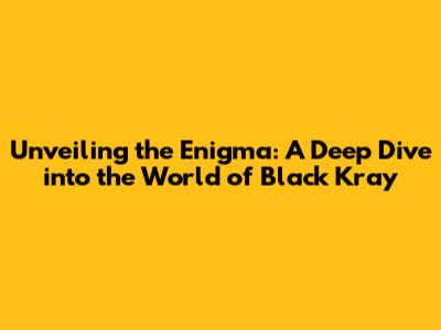 Unveiling The Enigma: A Deep Dive Into The World Of Black Kray