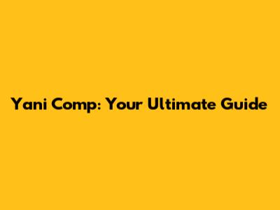 Yani Comp: Your Ultimate Guide